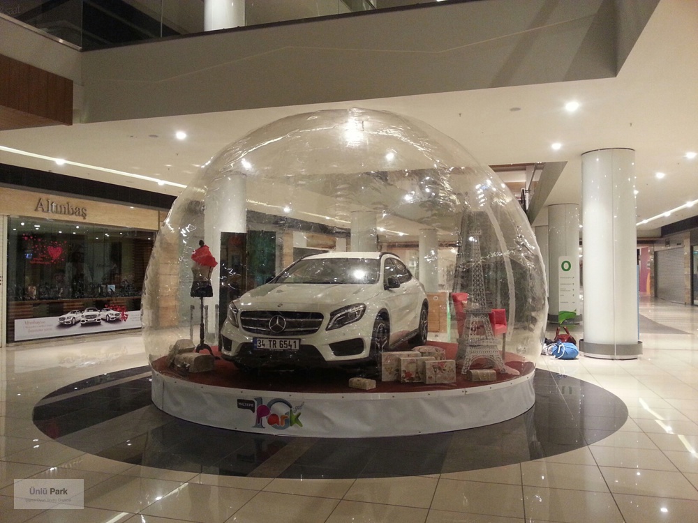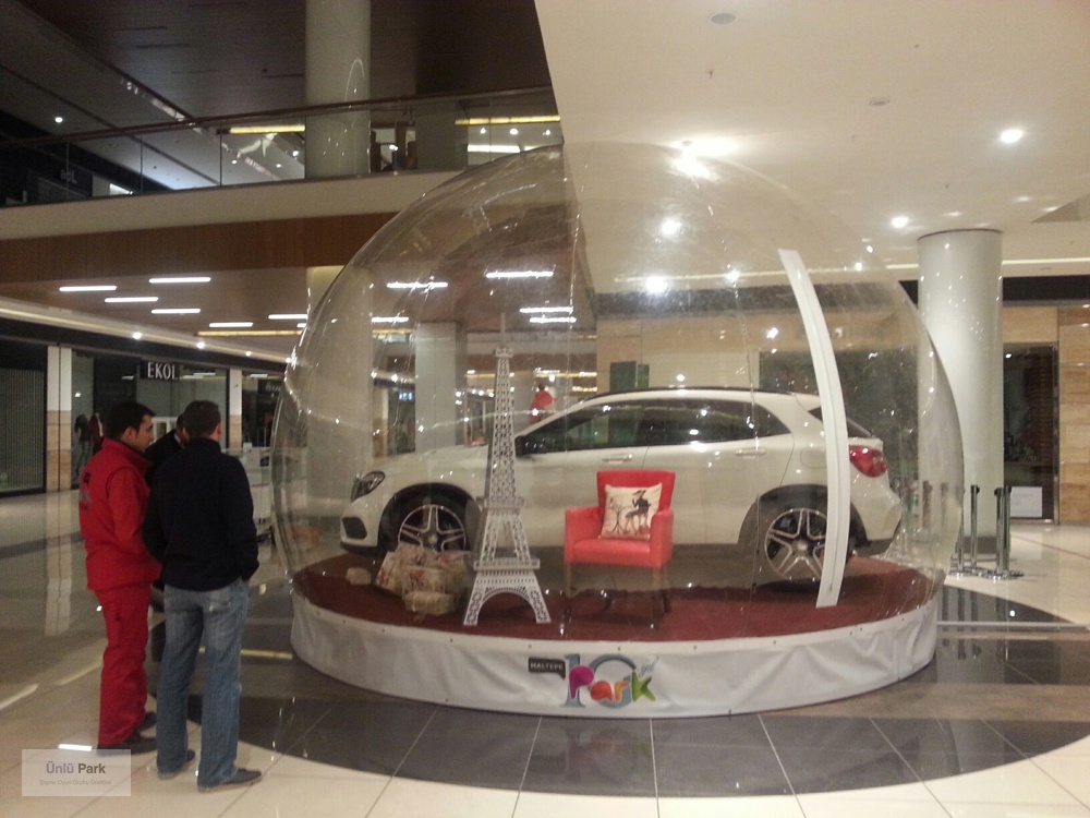 İç kısmı yapay kar efektleri, yılbaşı süslemeleri ve marka dekorları ile zenginleştirilebilir.