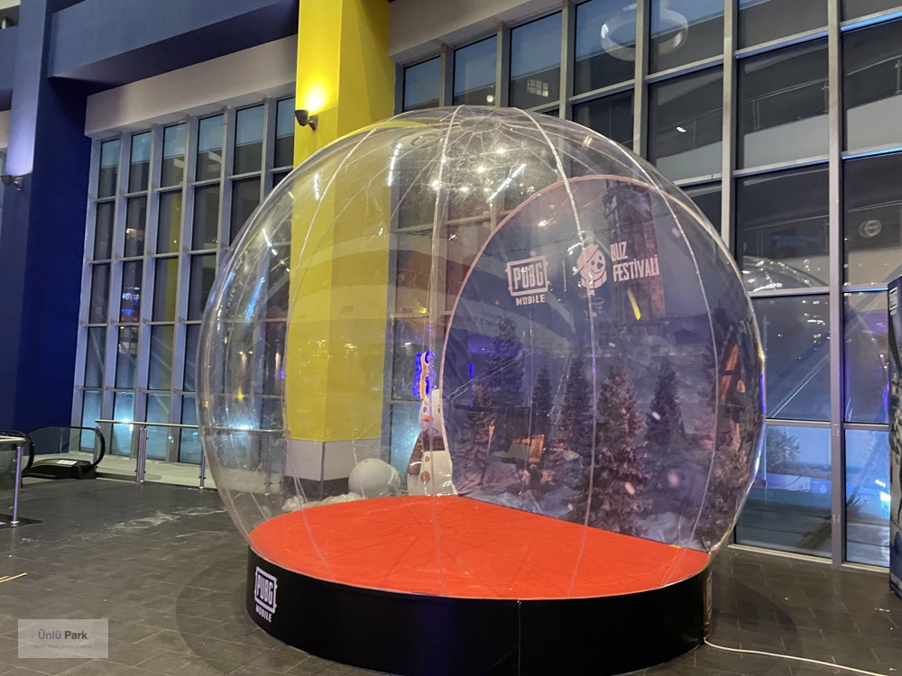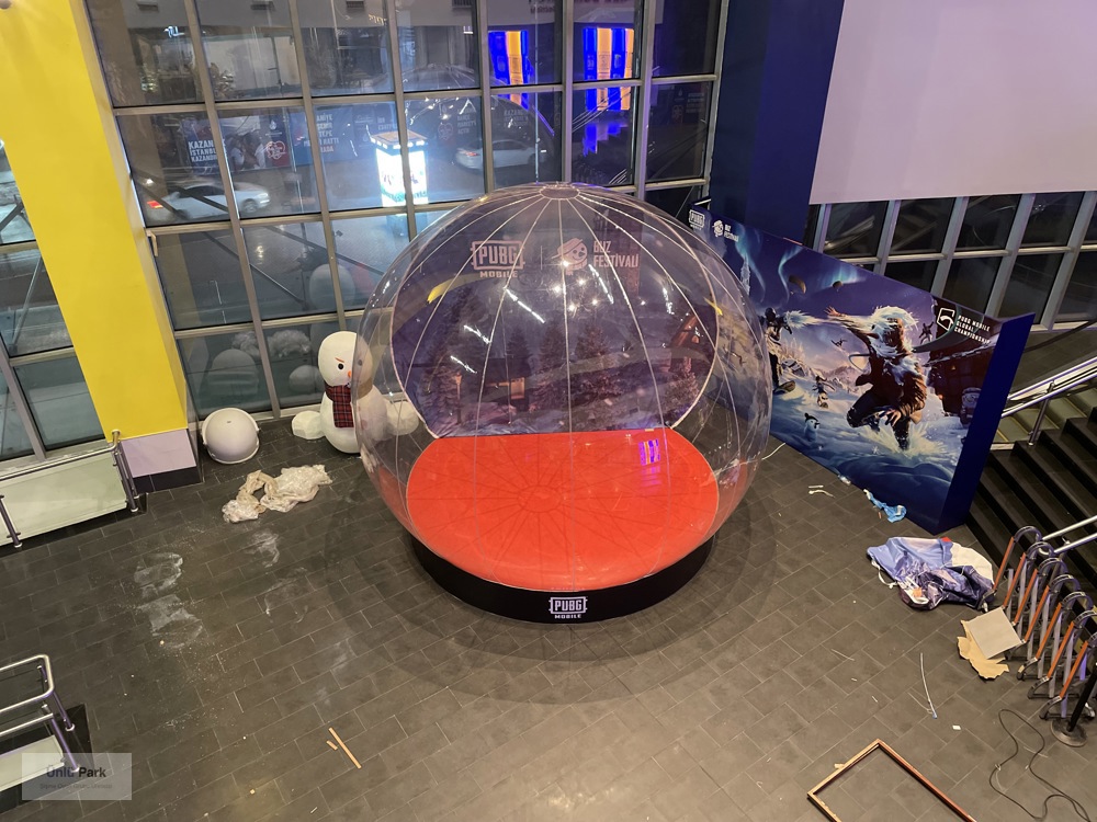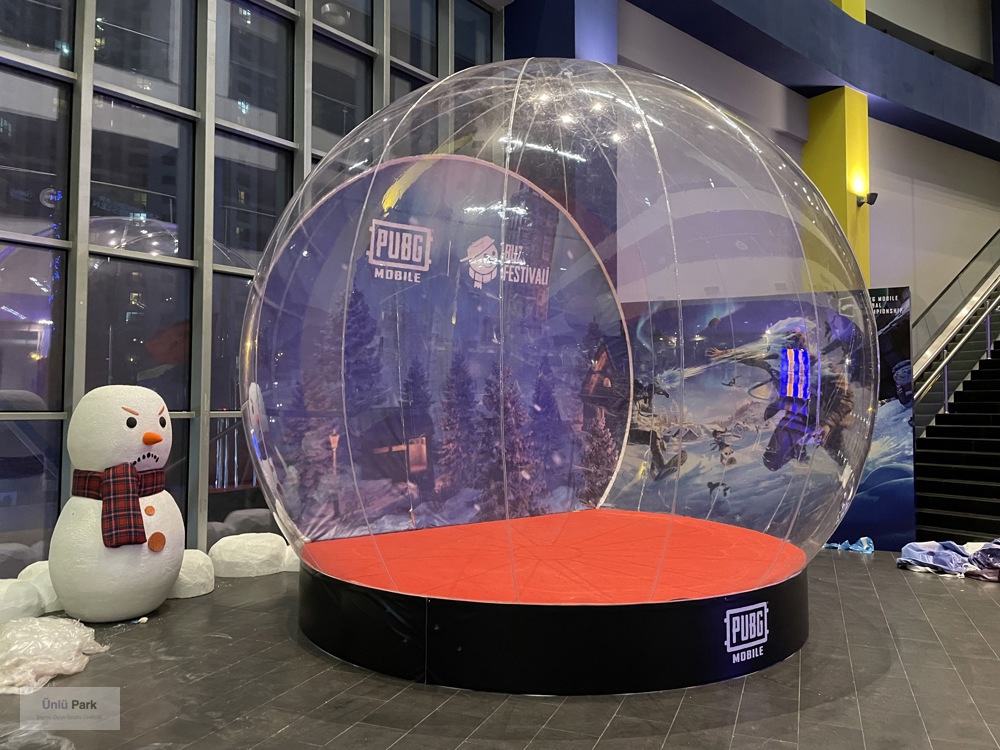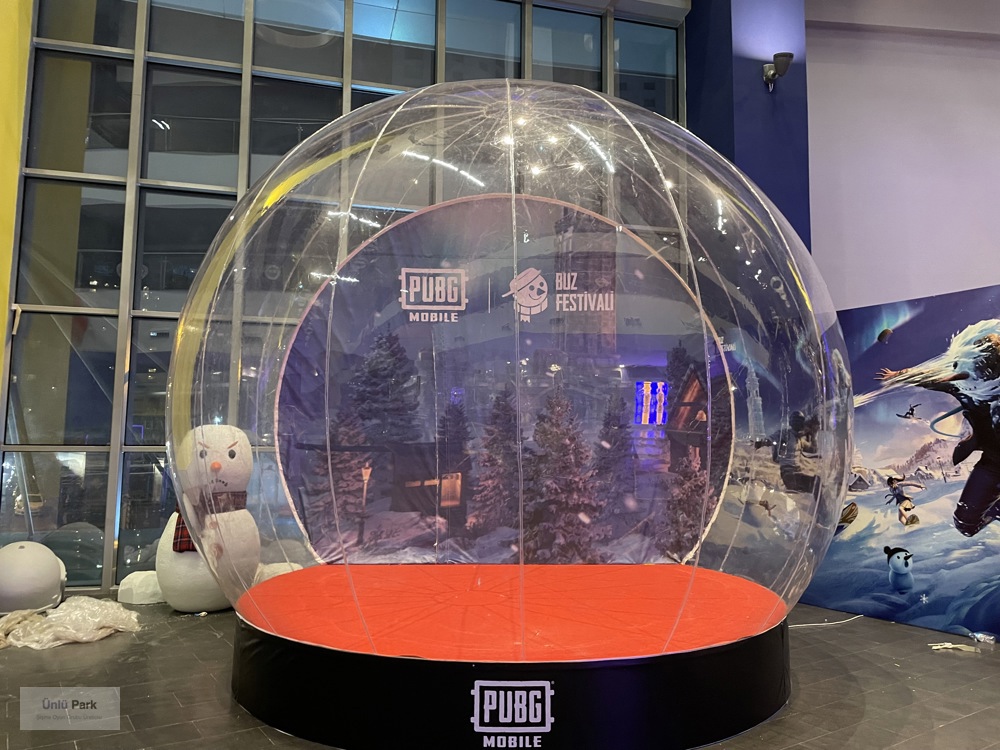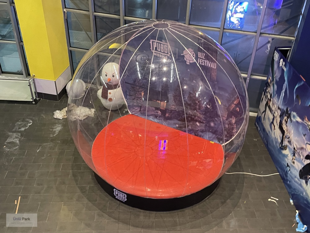 3 metre çapındaki bu dev küre, üzerine baskılanan logo, slogan veya ürün görselleri sayesinde uzaktan bile kolayca fark edilir.