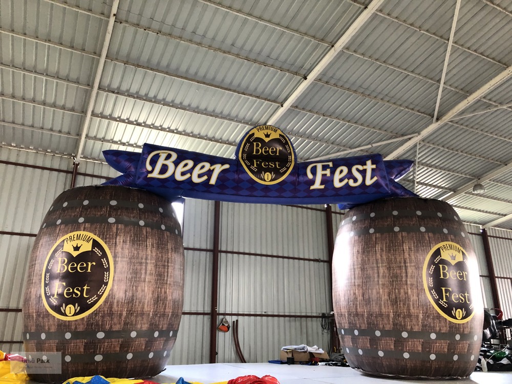 Şişme Oktoberfest fıçı giriş takı, festival ve etkinlik alanlarının girişini görkemli ve tematik hale getiren dikkat çekici bir dekorasyondur.