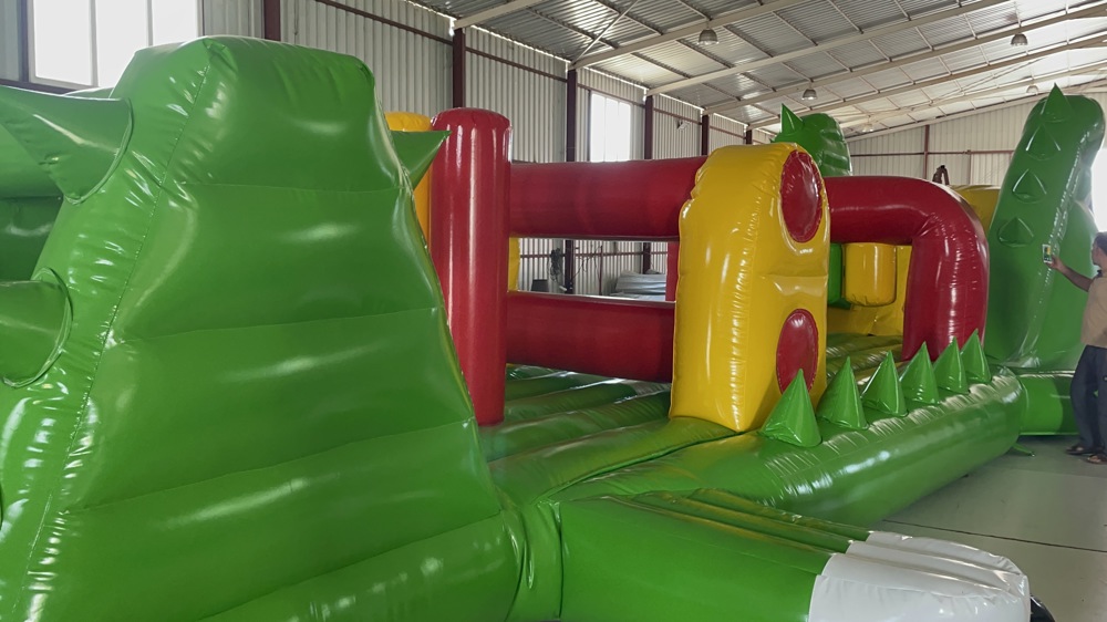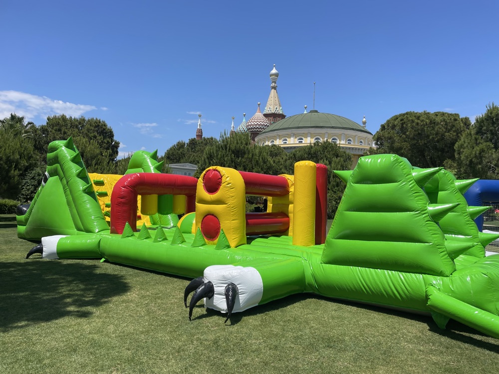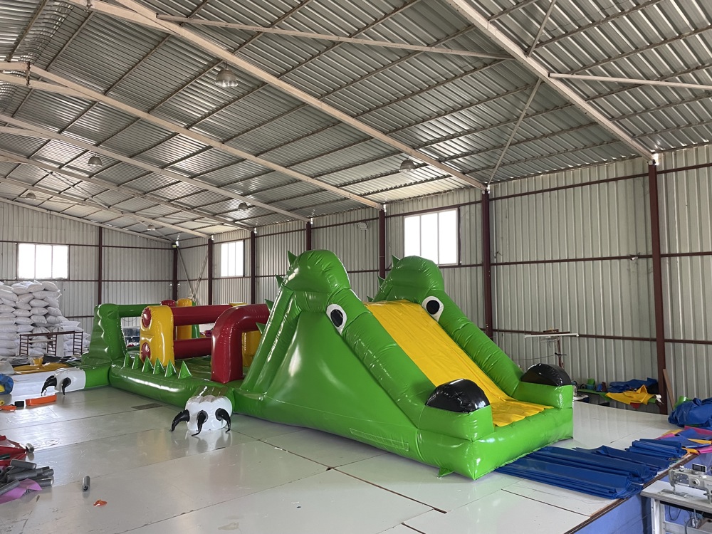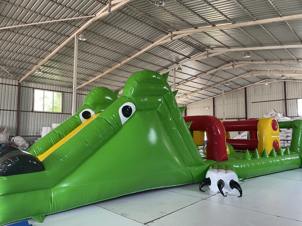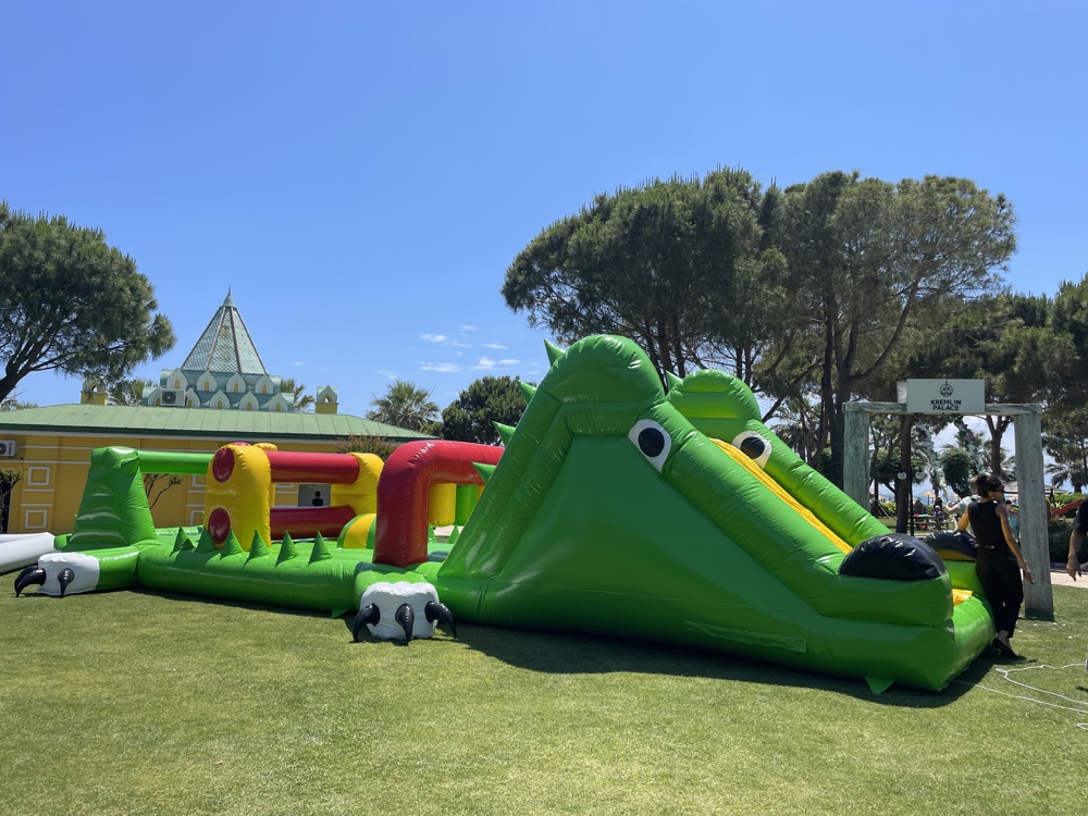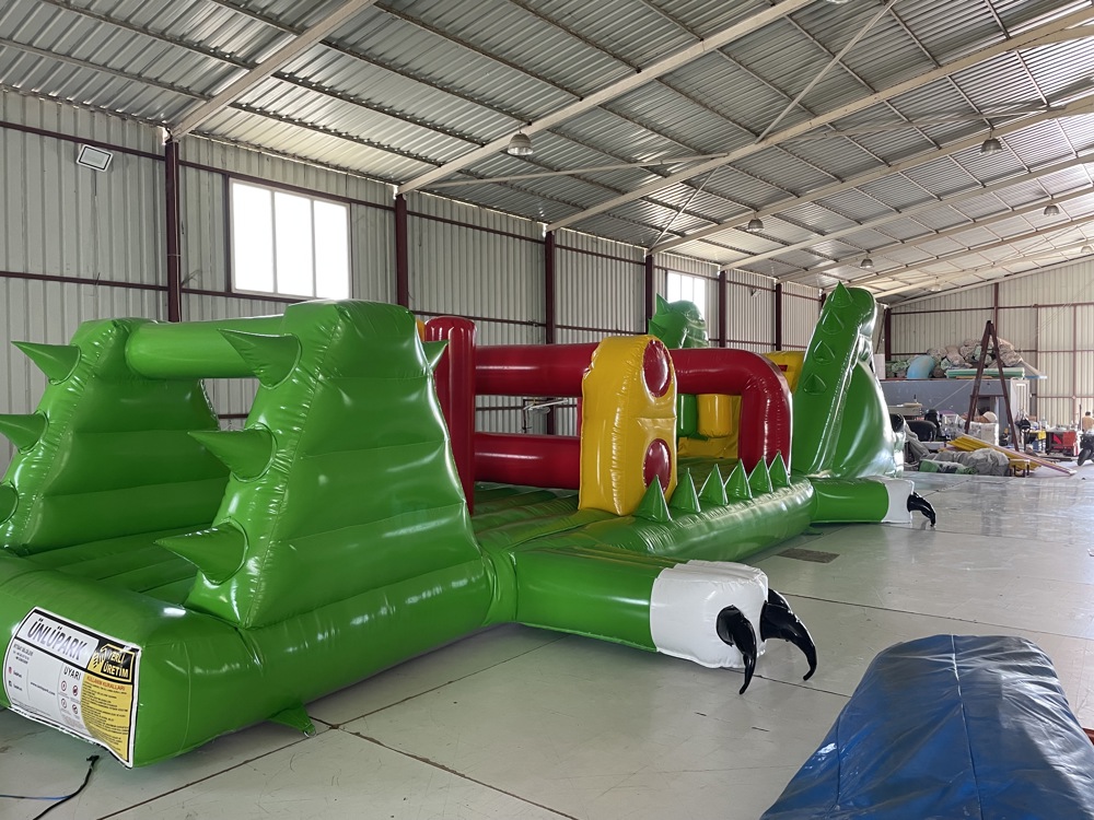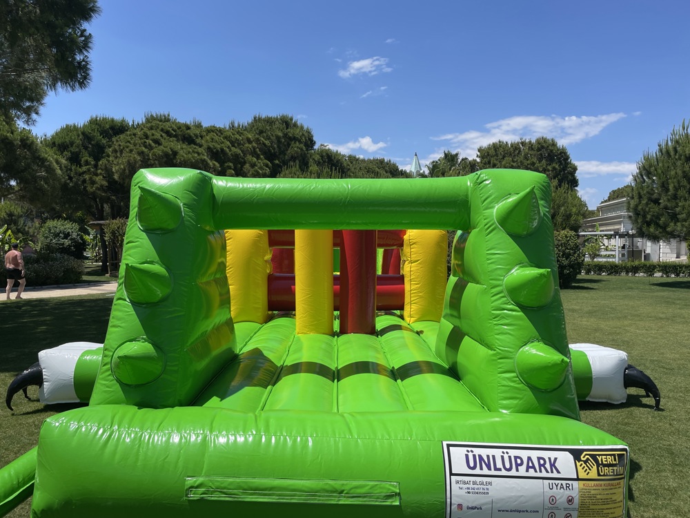Şişme Havuz Oyunu Timsah 14×3×3 m, büyük boyutları ve eğlenceli timsah temasıyla su üstü aktivitelerine farklı bir boyut kazandırıyor.
