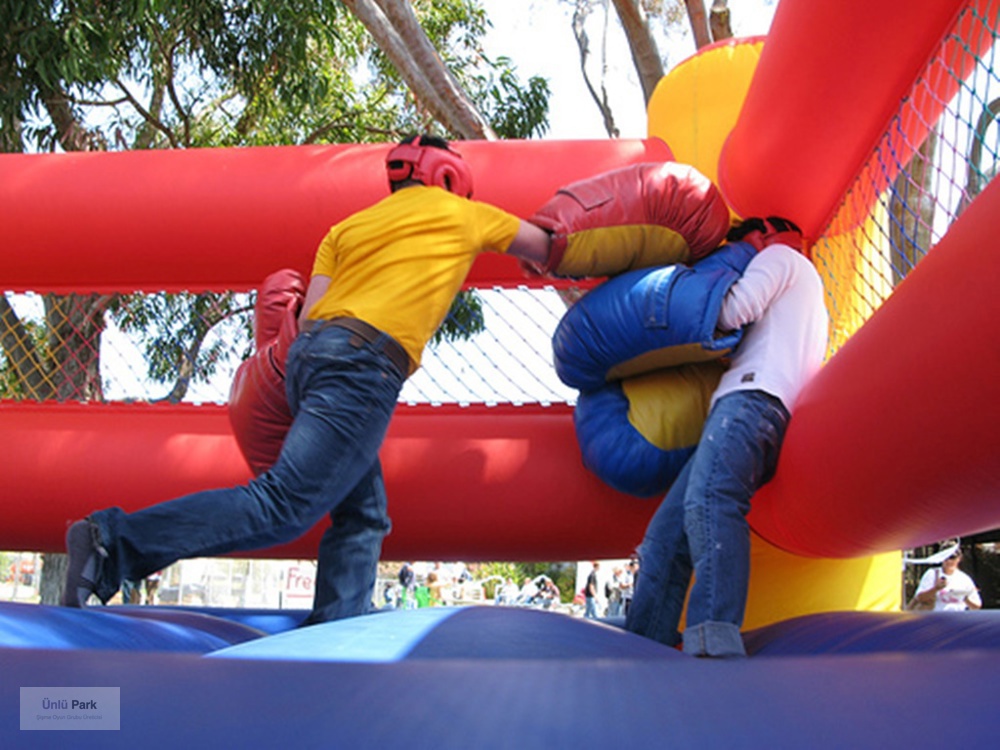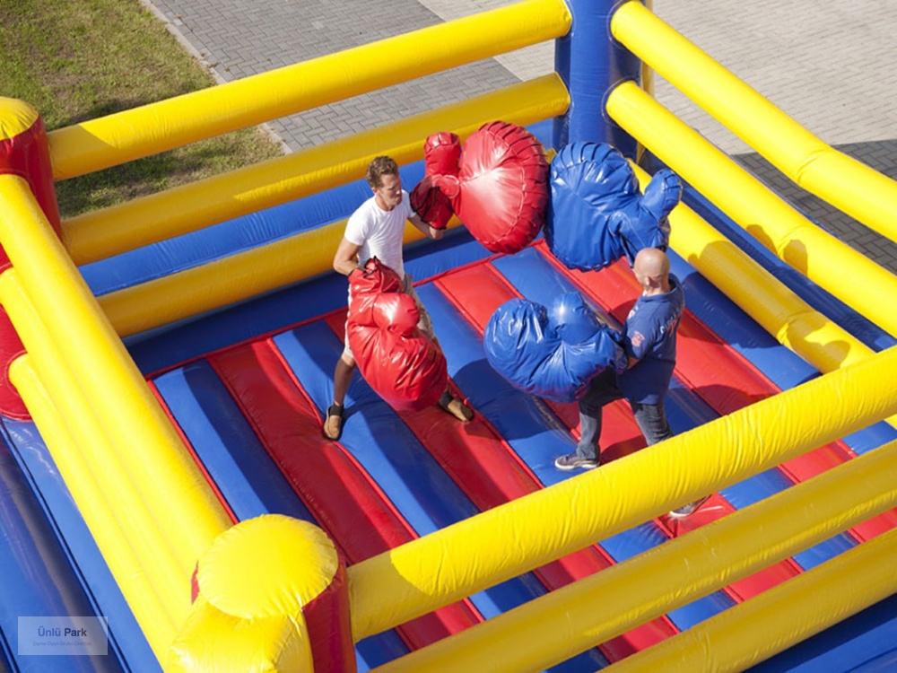 Şişme Boks Ringi, katılımcıların dev yumuşak eldivenlerle karşı karşıya geldiği hem eğlenceli hem güvenli bir aktivite alanıdır.