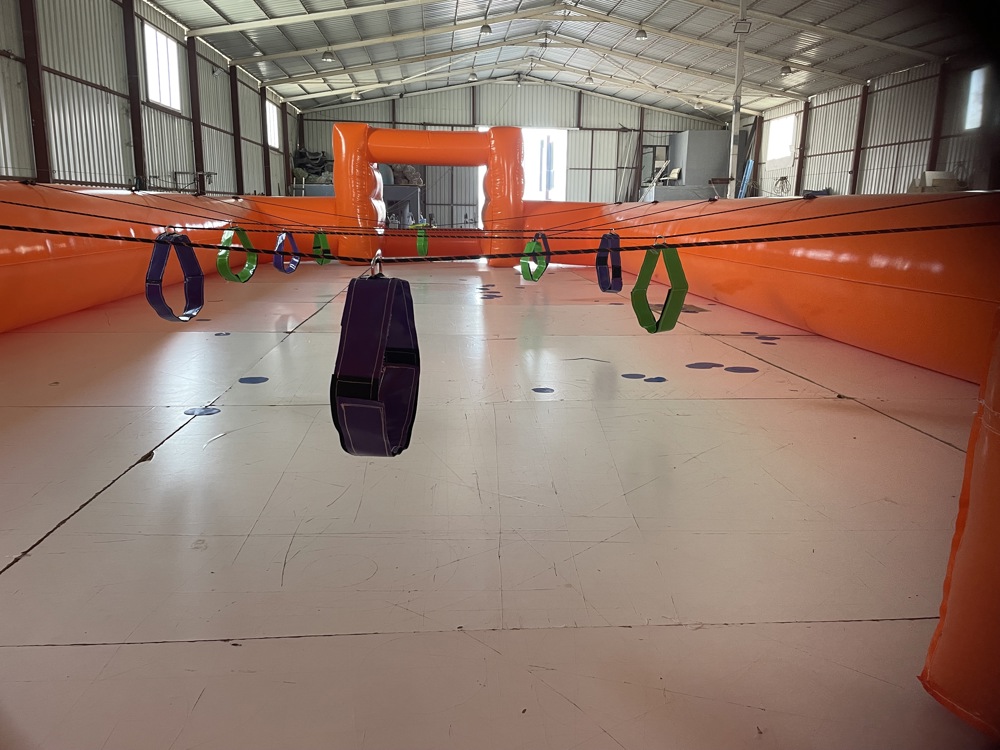 Halatlı şişme canlı langırt sahası, dev boyutlarıyla (12×6×2 metre) adrenalin ve eğlenceyi bir araya getiriyor.