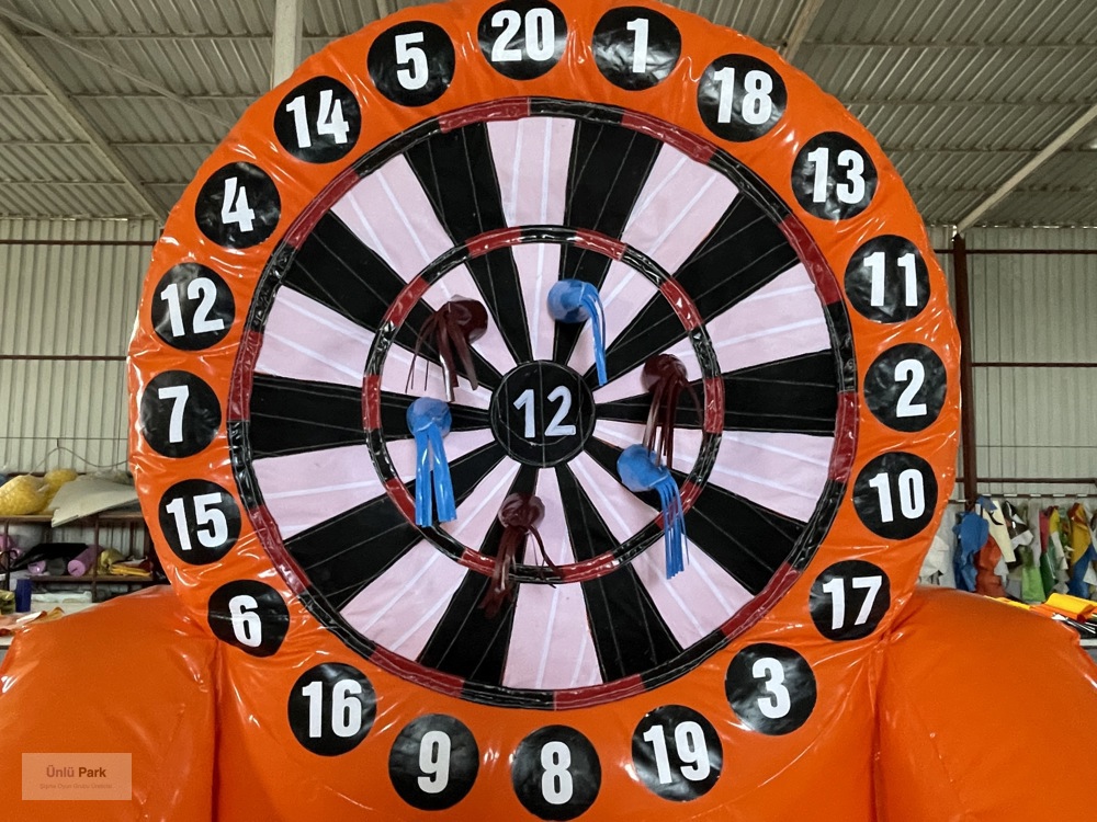 2.5x2.5x3 metre ölçülerindeki bu şişme dev dart tahtası, velcro özellikli yumuşak toplarla oynanır.