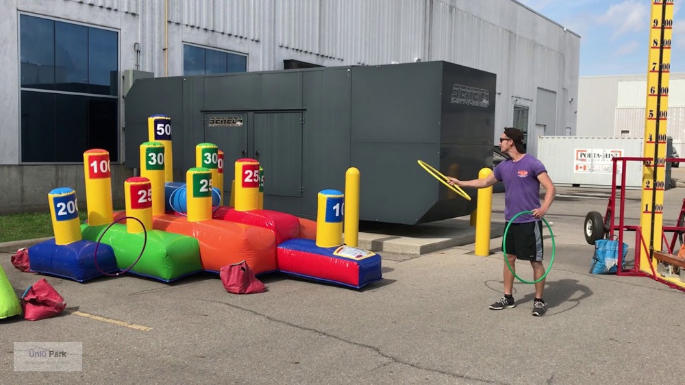 3.5x3.5x2 metre boyutlarındaki bu şişme oyun alanı, velcro veya sabit direklere sahip olup katılımcıların halkaları belirlenen hedeflere isabet ettirmeye çalıştığı eğlenceli bir etkinlik sunar.