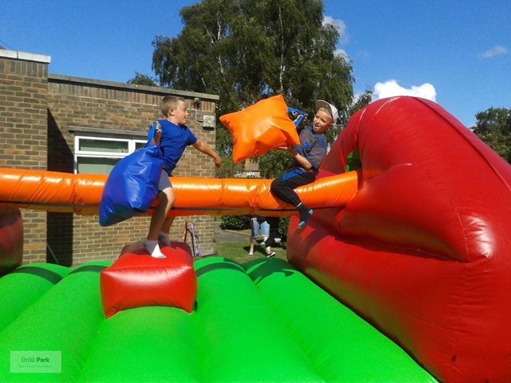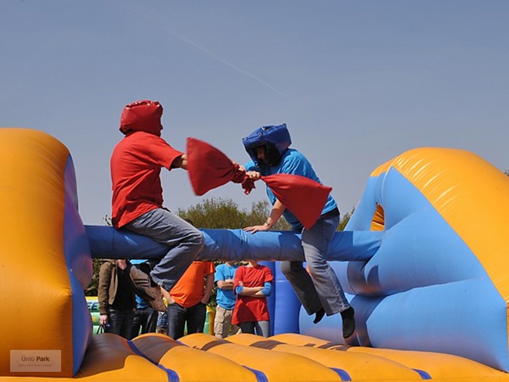 Şişme Yastık Savaşı 4x4x2m, eğlence, rekabet ve kahkahayı bir araya getiren harika bir etkinlik oyunudur.