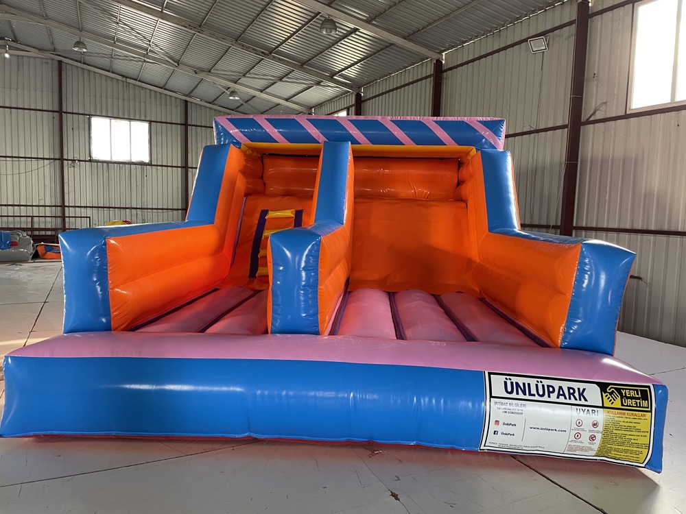 İç Mekan Şişme Kaydırak, 5,5x4x2,75 metre ölçüleriyle sınırlı alanlarda dahi kolayca kurulabilen, kompakt ve eğlenceli bir kaydırak modelidir.