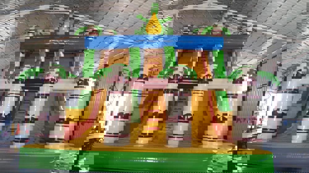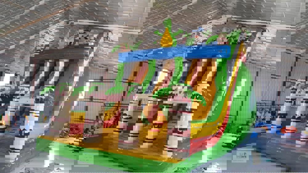 Şişme Dino Kaydırak 8×5×7m, dinozor temasını eğlenceli bir oyun deneyimiyle birleştiren büyük boyutlu bir kaydıraktır.