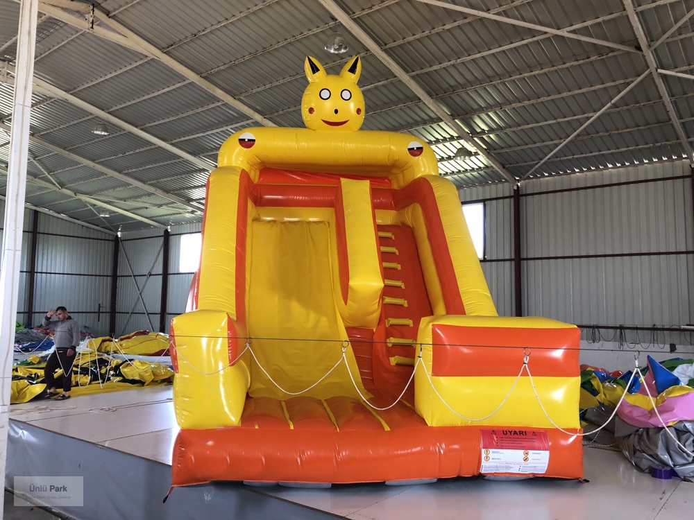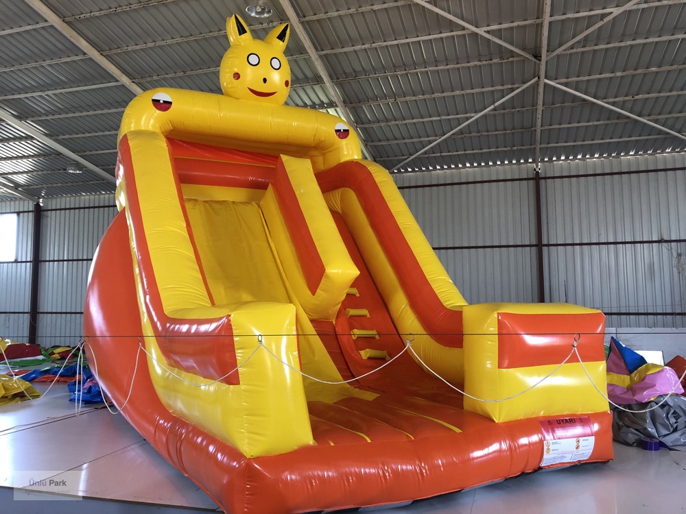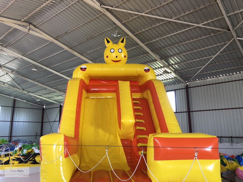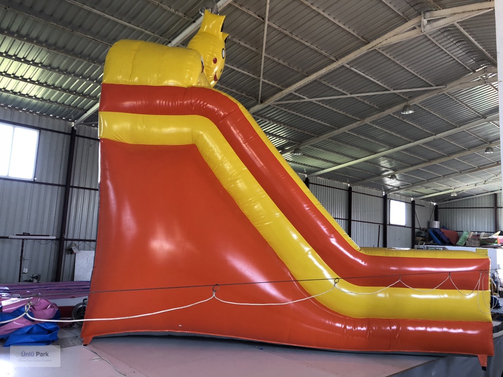 Şişme Kaydırak Pikaçu 6×4×6m, dünyaca ünlü ve çocukların çok sevdiği Pikaçu karakteriyle tasarlanmış, göz alıcı ve enerjik bir kaydırak modelidir.