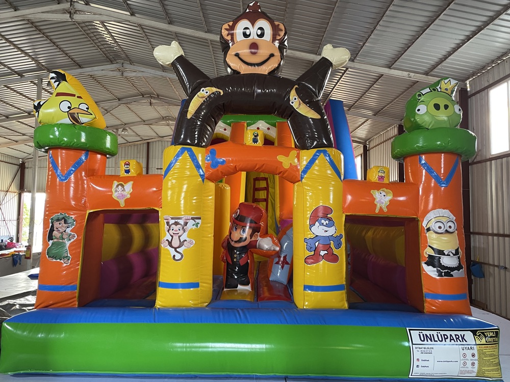 Büyük kaydırağı, zıplama alanı ve tırmanma bölümleri ile hem fiziksel aktivite hem de güvenli oyun imkânı sağlar.