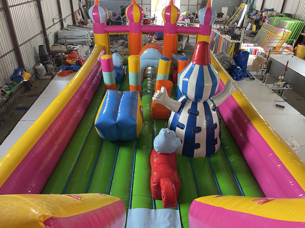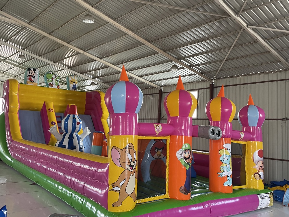 Şişme Oyun Parkı Kubbeli 14×6×6 m, hem boyutları hem de mimariyi andıran kubbeli yapısıyla dikkat çeken, üst düzey bir eğlence ünitesidir.