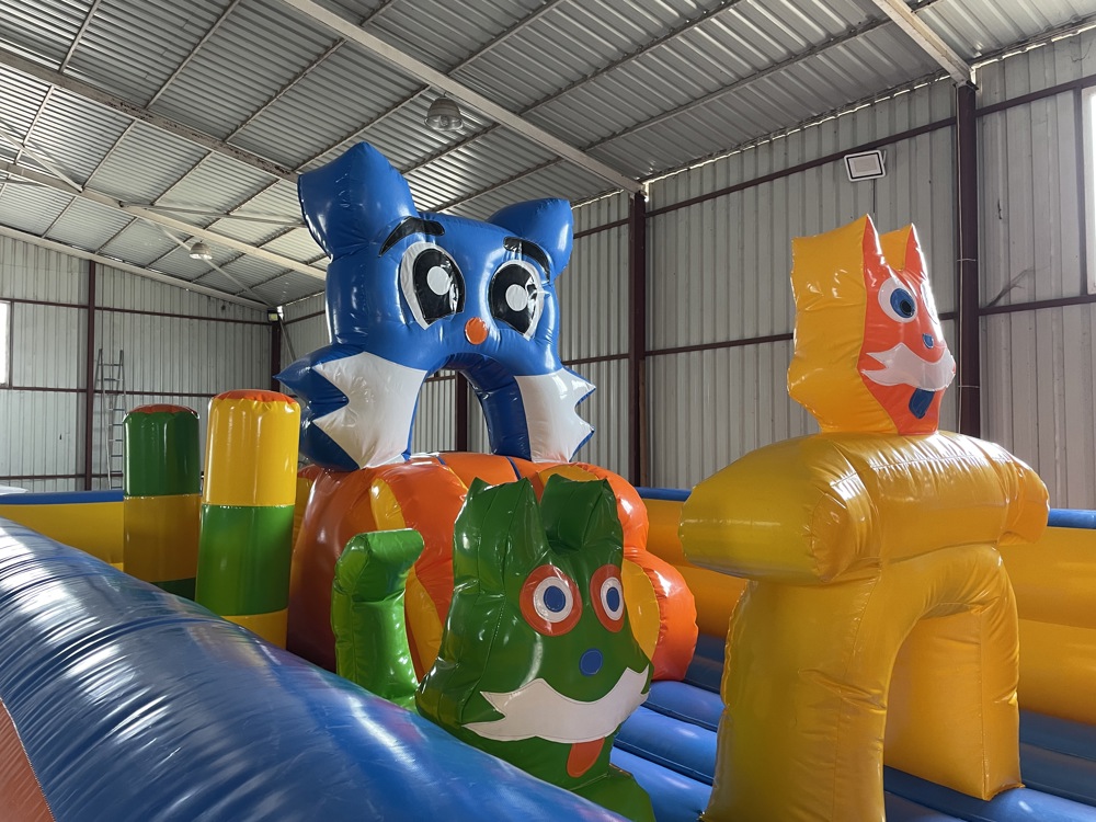 Şişme Oyun Parkı Kuzulu 8×5×3 m sevimli tasarımı ve renkli yapısıyla çocukların ilgisini çeken özel bir eğlence alanıdır.