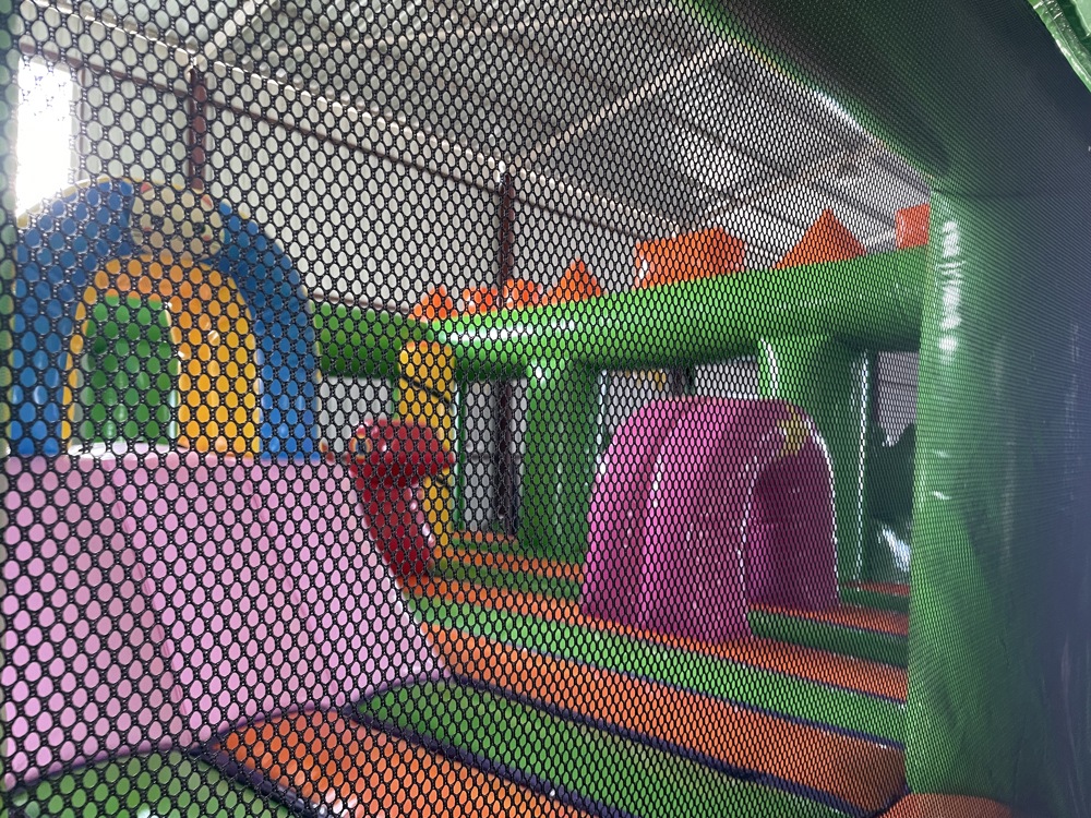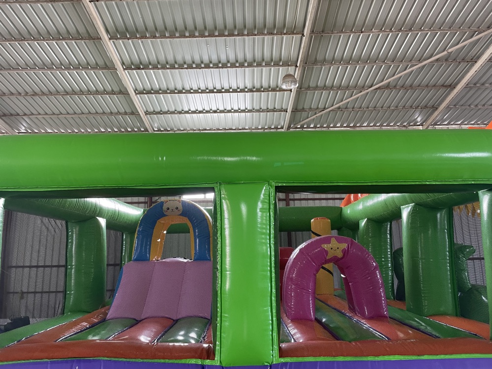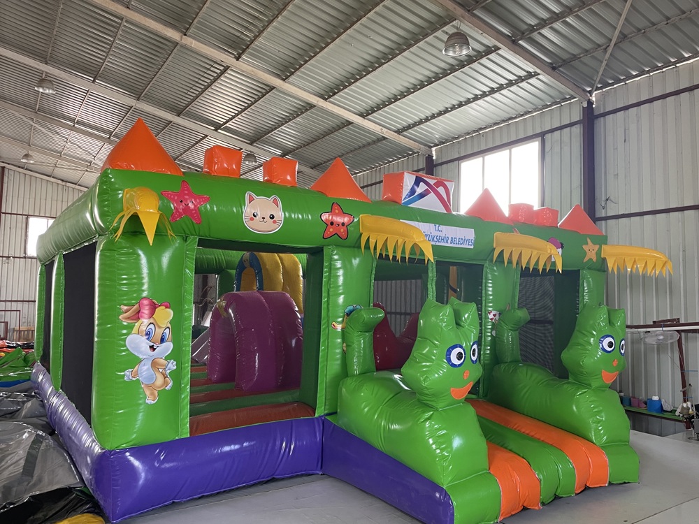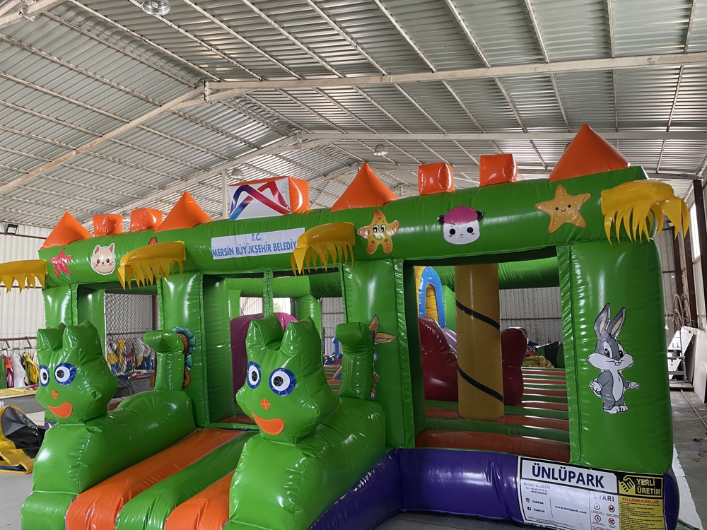 Üzerinde palmiye ağaçları, ada figürleri ve canlı renklerle süslenmiş bu oyun parkı; zıplama alanı, küçük tırmanış bölümü ve kaydırak gibi eğlenceli aktiviteleri bir arada sunar.