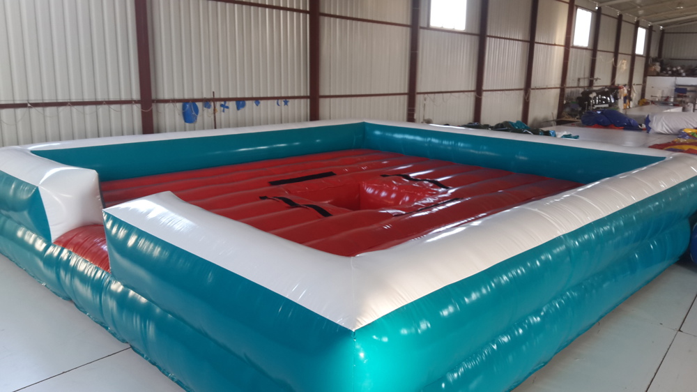 6x6x1 metre boyutundaki Şişme Rodeo Minderi, mekanik rodeo boğa gibi eğlenceli aktivitelerde katılımcıların güvenliğini sağlamak için özel olarak tasarlanmıştır.