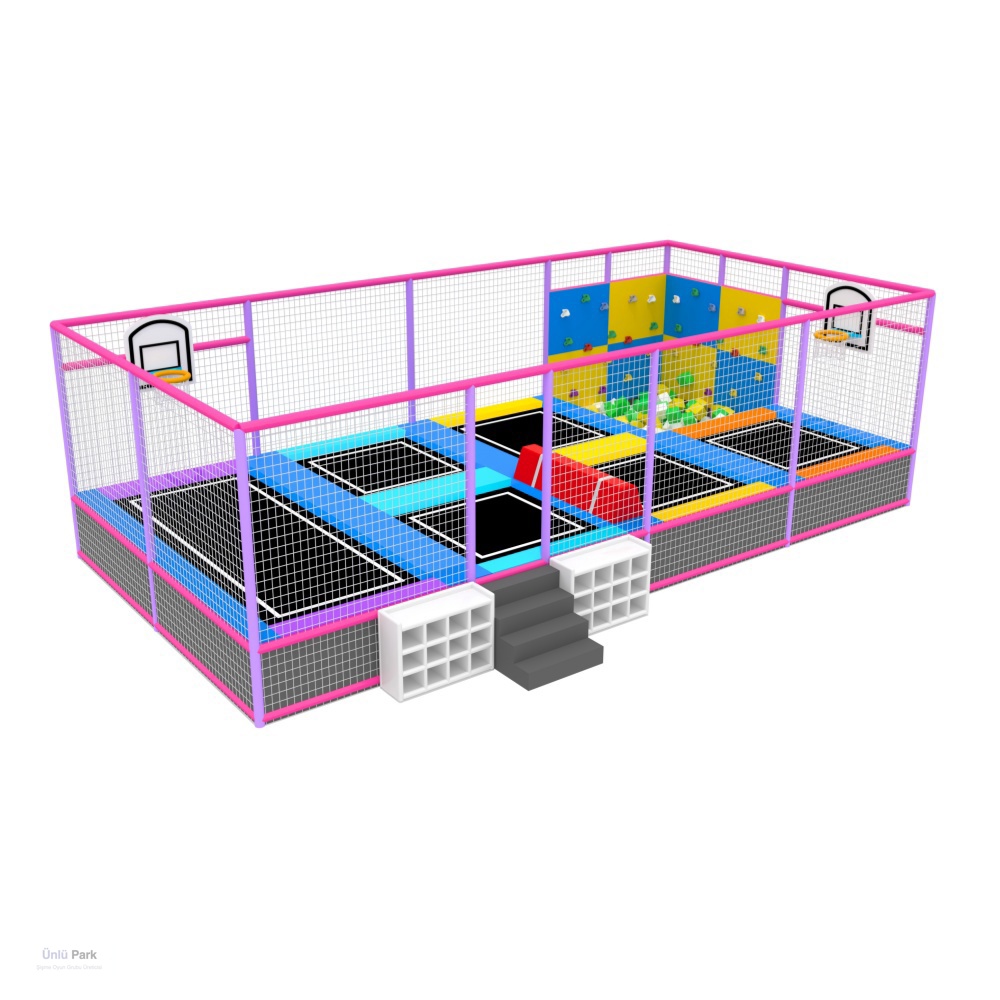 Geniş trambolin zıplama bölümüyle enerji dolu bir deneyim sunarken, entegre tırmanma duvarı sayesinde çocuklar ve gençler için macera dolu bir aktivite alanı oluşturur.