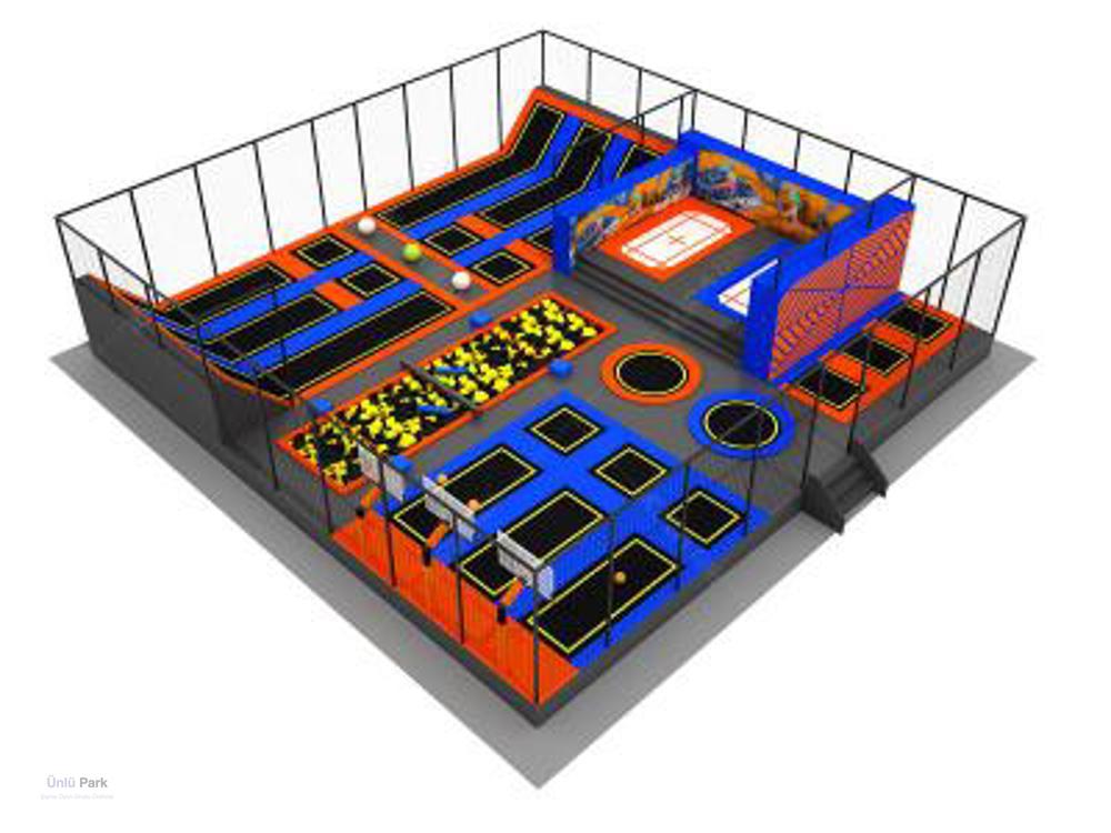 Yatay tasarımlı geniş trambolin park! Spor, eğlence ve güvenliği bir arada sunan dayanıklı oyun alanı.
